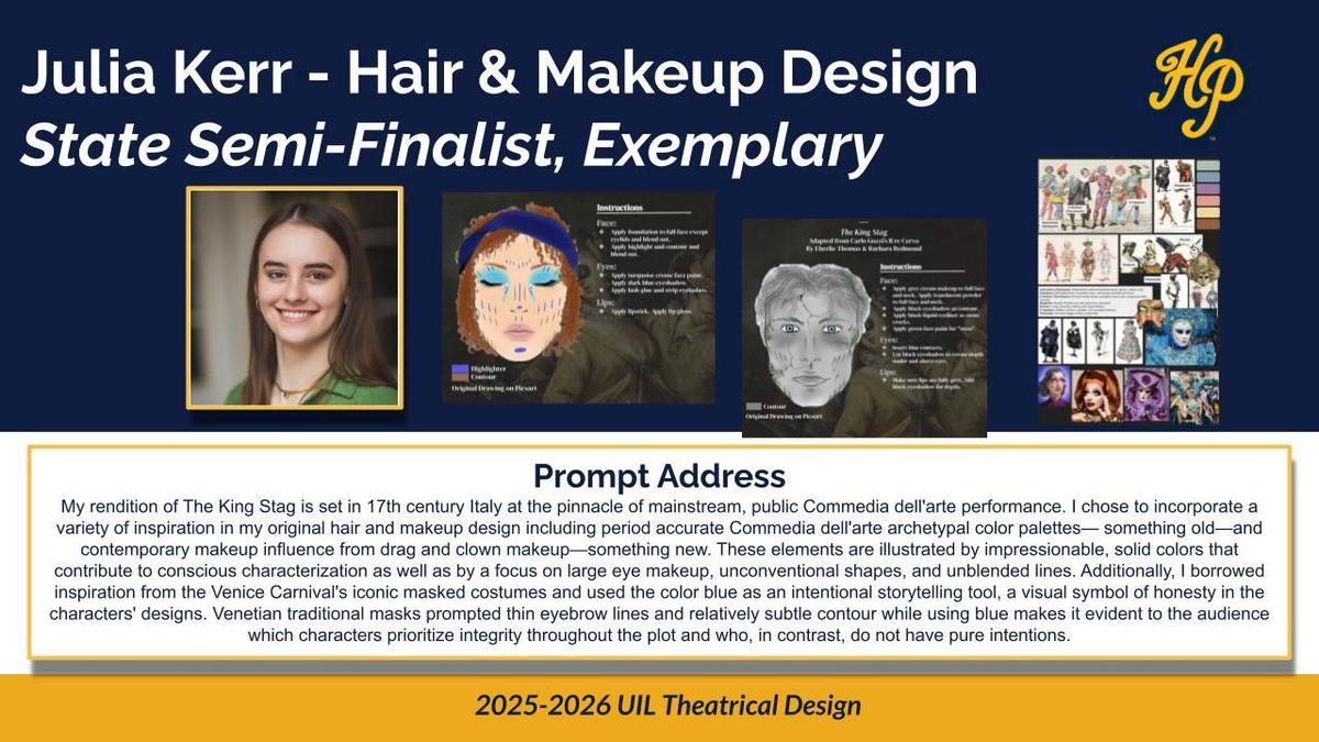 HPHS also had two students recognized as State Semi-Finalists (Exemplary) in Makeup Design, including senior Julia Kerr and junior Lauren Tharp.
